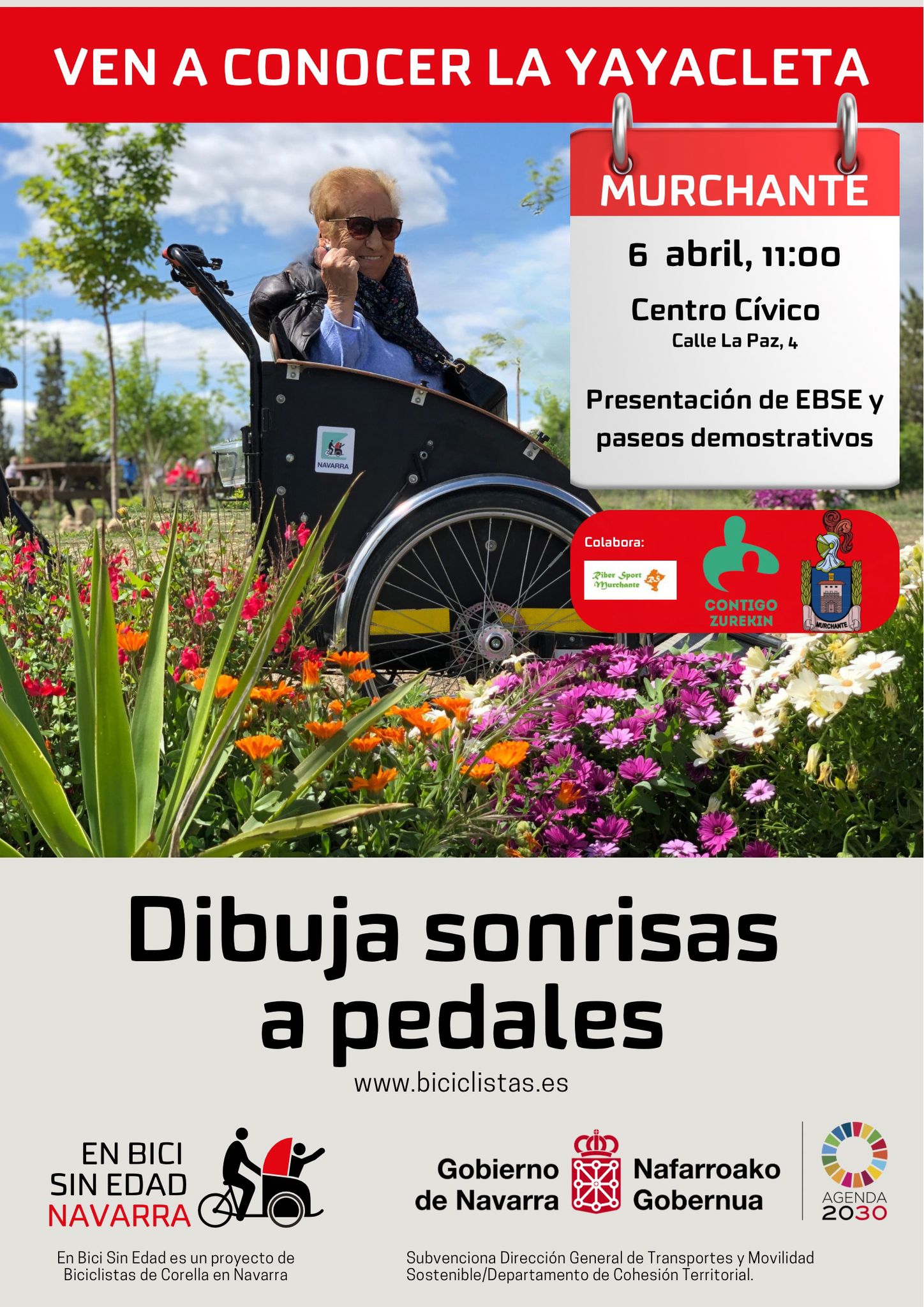 El domingo, 6 de abril, presentaremos el proyecto En Bici Sin Edad a las 11:00h, en el Centro Cívico de Murchante (calle La Paz, 4)